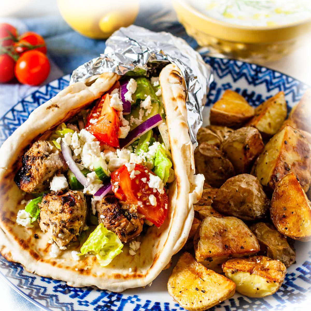 Slow cooked seasoned Chicken stuffin in our very own in house made Greek Pita filled with fries and Garlic Sauce
